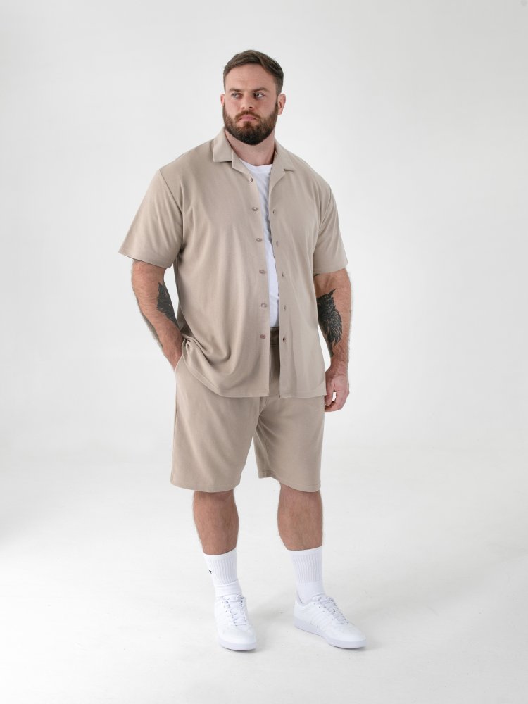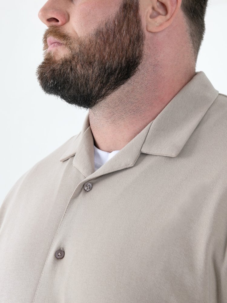 D555 Mens Stone Short Sleeve Stretch Shirt With Cuban Collar (CONNOR 3)