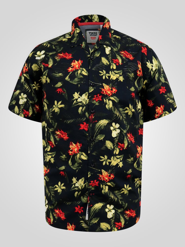 D555 Big Mens Short Sleeve Shirt With Hawaiian Print and Cuban Collar (GORDON)