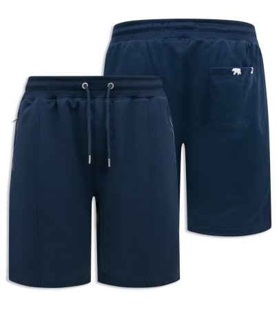 The D555 'Spalding' interlock shorts in navy are a perfect blend of comfort and style. Crafted from a high-quality cotton-polyester blend, these shorts offer a soft feel with added durability. The pin tuck front adds a sleek and modern touch, while the elasticated waistband and drawstring ensures a flexible and comfortable fit. Equipped with two side zipped pockets, these shorts provide secure storage for your essentials, and a rear pocket with D555 branding adds a subtle yet stylish detail. Ideal for casual wear, these shorts combine practicality with a sharp, contemporary look. Whether you're relaxing at home or out on a casual outing, these shorts are a versatile addition to your wardrobe.