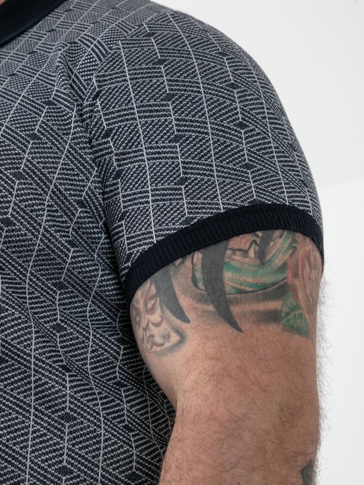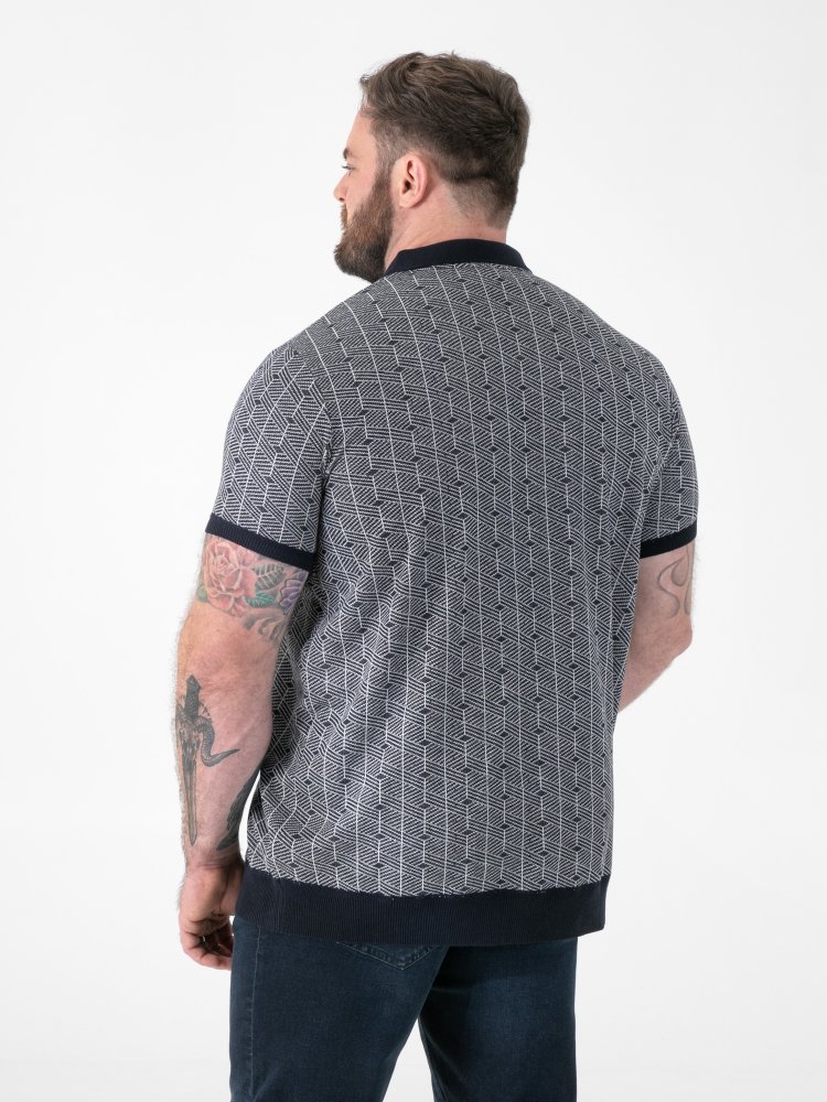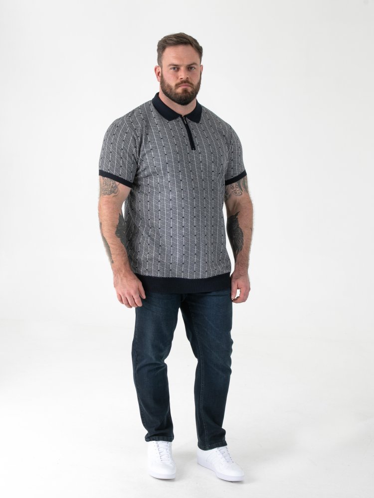 • D555 Mens Jacquard Knitted Polo Shirt With Quarter Neck Zip (PERRY)