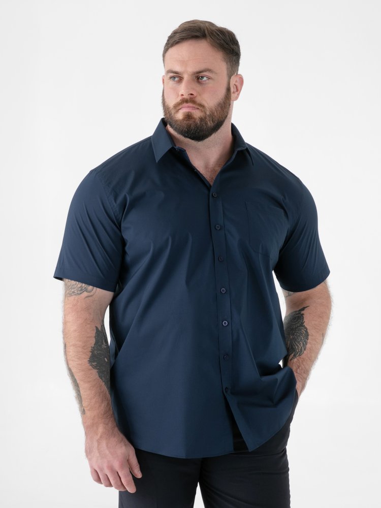 • D555 Mens Navy Short Sleeve Stretch Shirt Stain Resistant Non Iron (LUCAS)