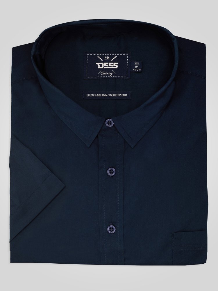 D555 Mens Navy Short Sleeve Stretch Shirt Stain Resistant Non Iron (LUCAS-NAVY)