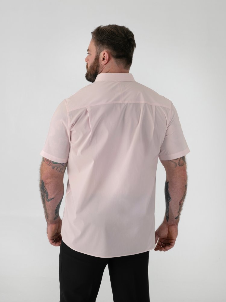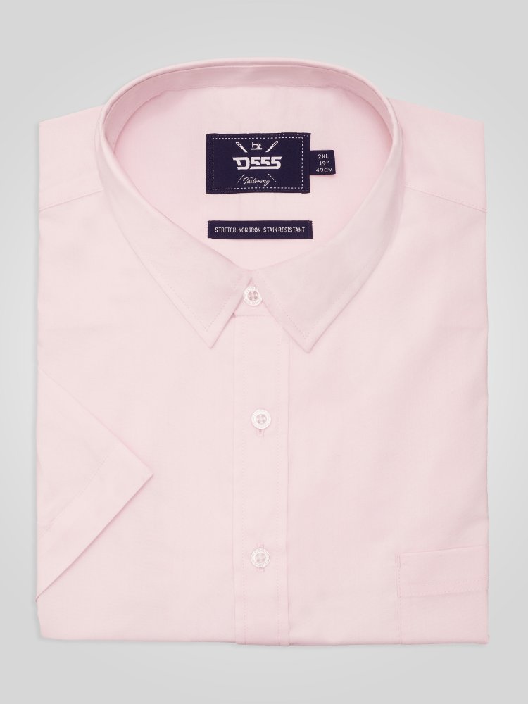 • D555 Mens Pink Short Sleeve Stretch Shirt Stain Resistant Non Iron (LUCAS)