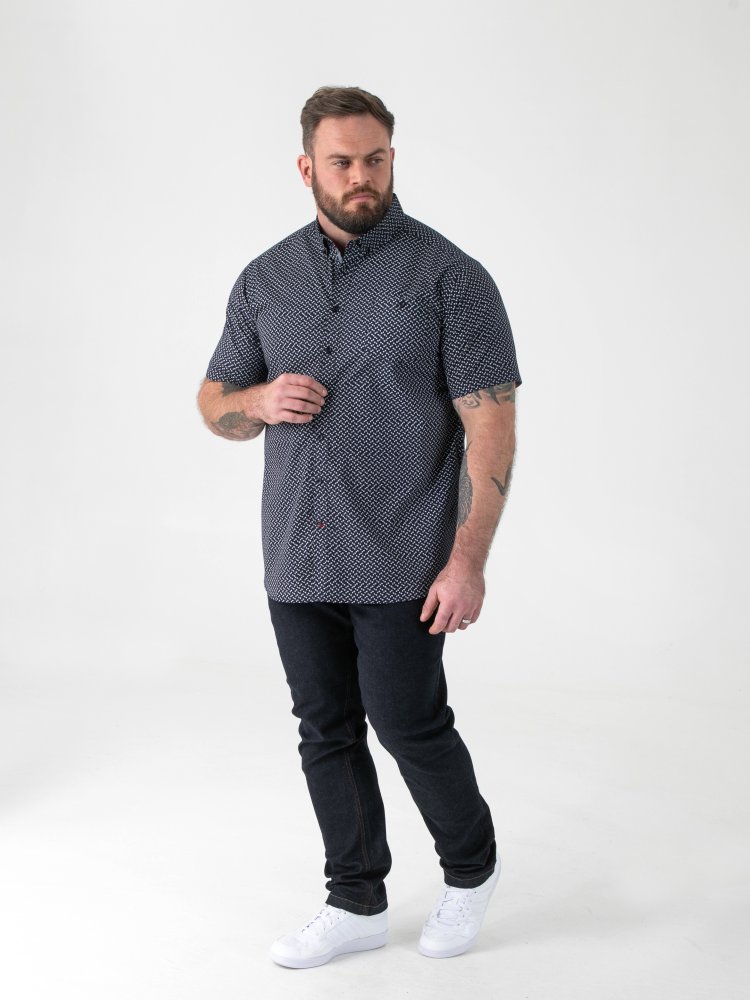 • D555 Mens Navy Short Sleeve Shirt With All Over Print (MELROSE)