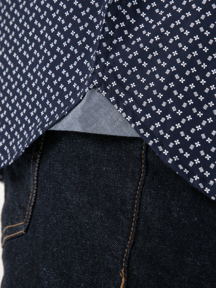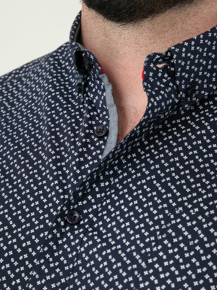 D555 Mens Navy Short Sleeve Shirt With All Over Print (MELROSE)