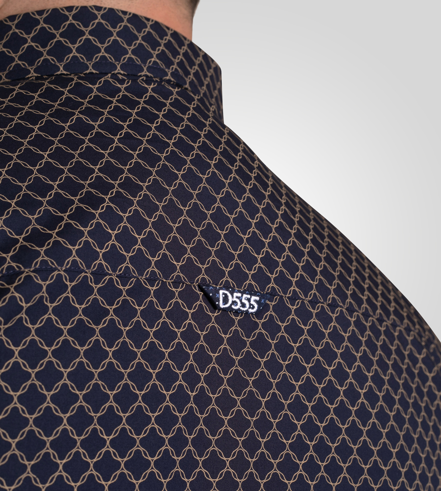 Presenting the new Men’s 'Sheffield' printed shirt from D555. Crafted from a pure cotton, the regular fit shirt features a gold micro all over print. The long sleeves and concealed button down collar gives it a smart, formal appearance. Finished with a curved hem and subtle D555 branding. Available in Navy.