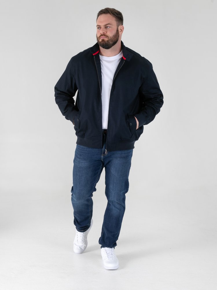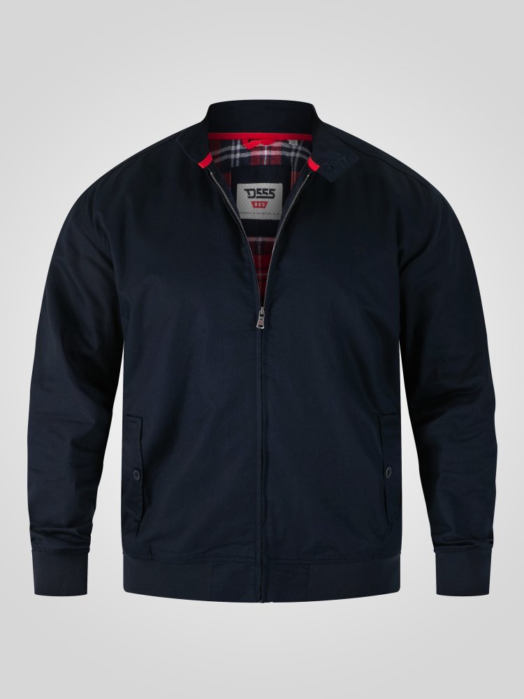 D555 Big Mens Navy Harrington Jacket With Elasticated Rib Hem and Cuffs (KENT-NAVY)