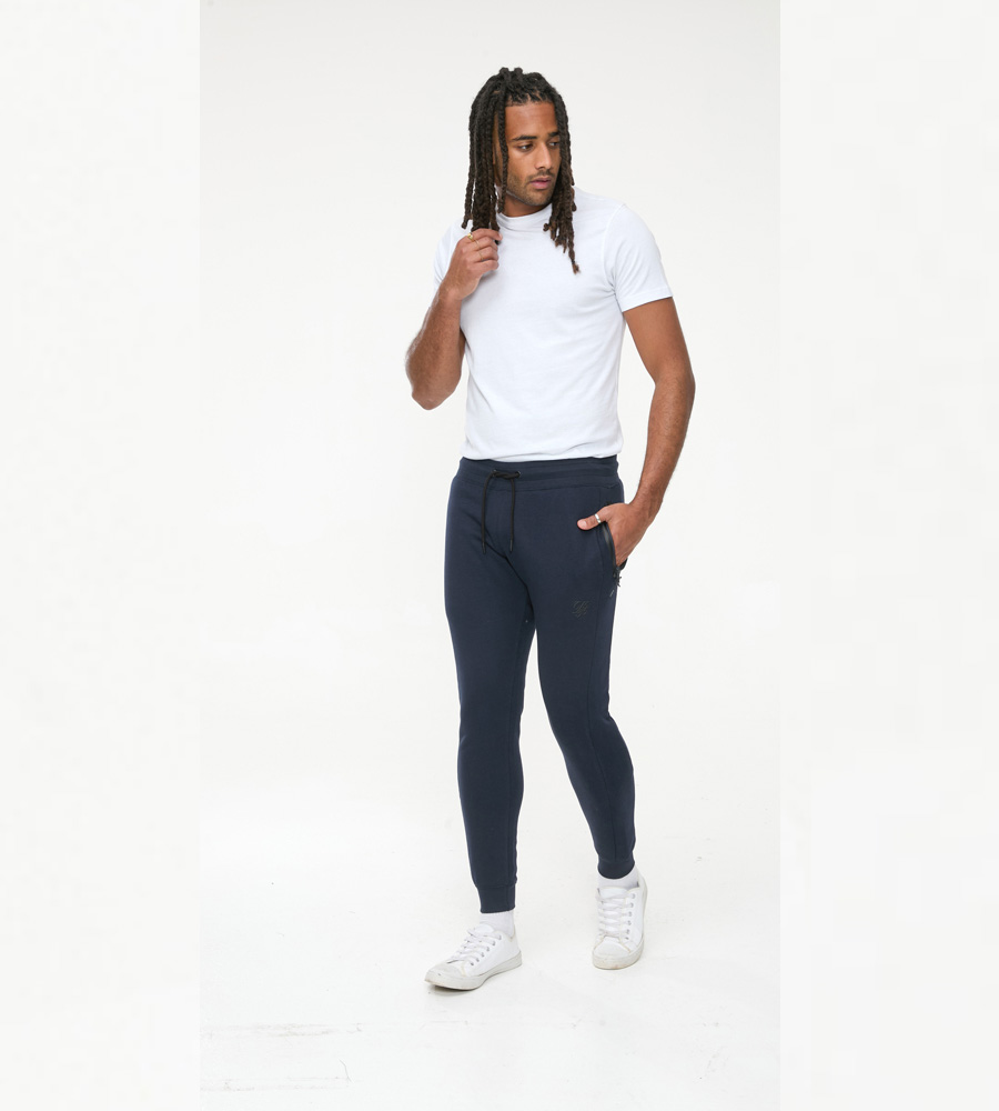 Get to where you’re going in style, our couture Joggers are a go-to for everyday comfort. The 'Ashford' joggers are designed with an elasticated waist with drawstring, two side pockets with zips to keep all valuables secure. You’ll be covered wherever your day takes you. Available in Navy.