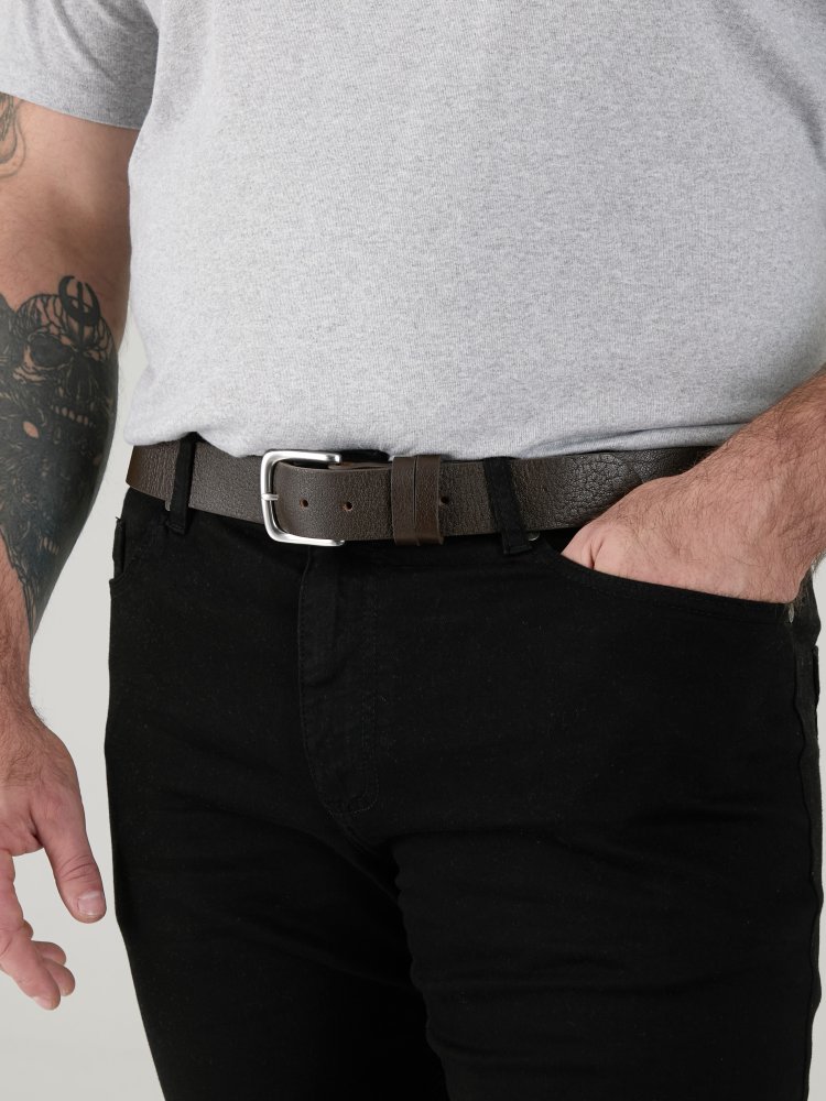 D555 Big Mens Brown Hand Crafted Real Leather Hide Belt 3.7 Cm Width (LIAM)