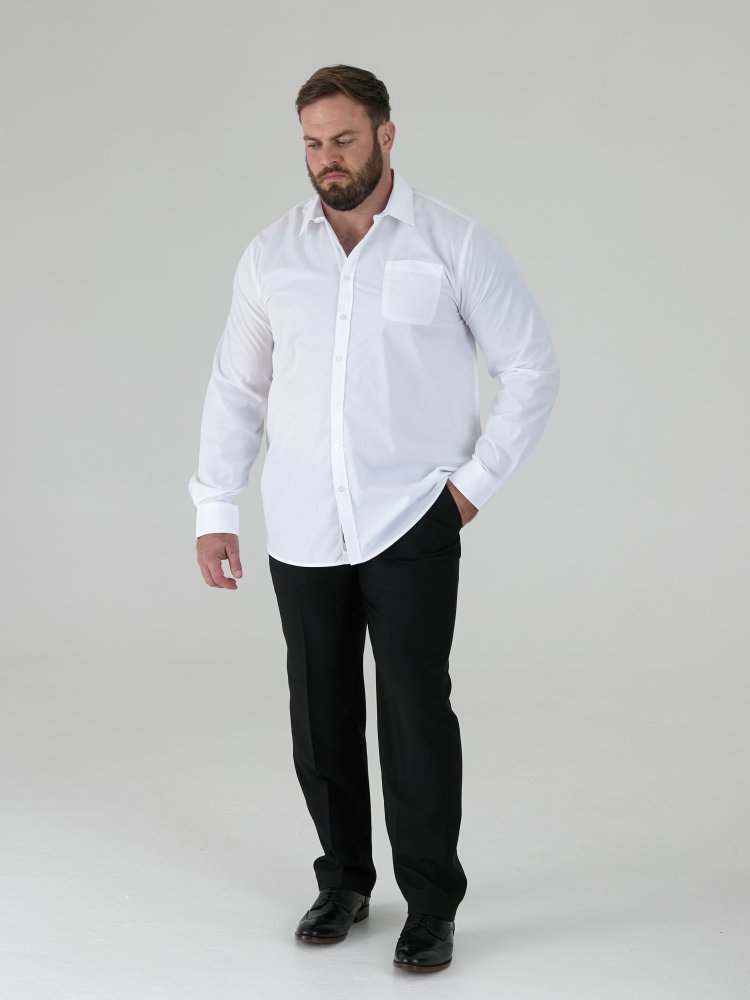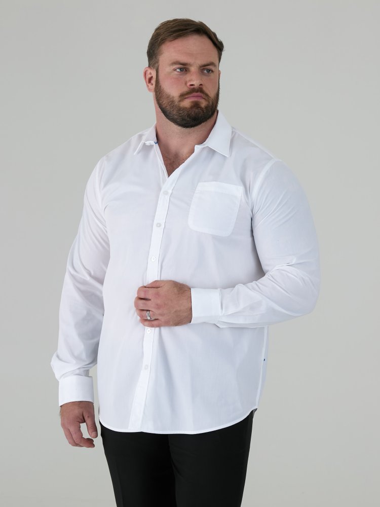 D555 Big Mens White Long Sleeve Easy Iron Classic Regular Shirt (AIDEN )