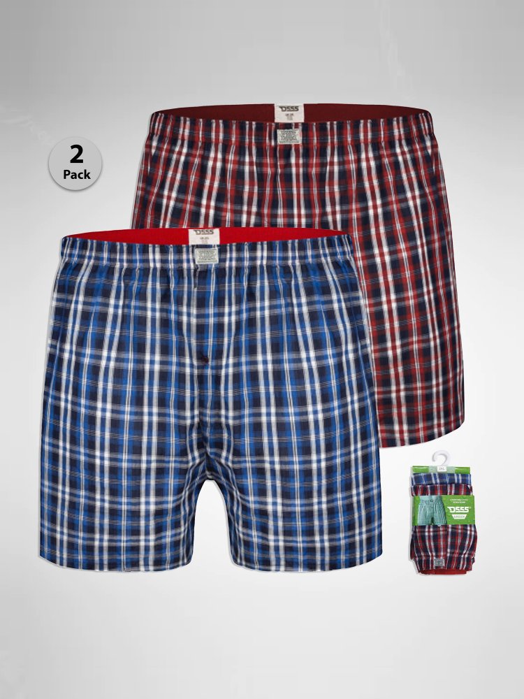 • D555 Pack of Two Woven Boxer Shorts (PLAID)