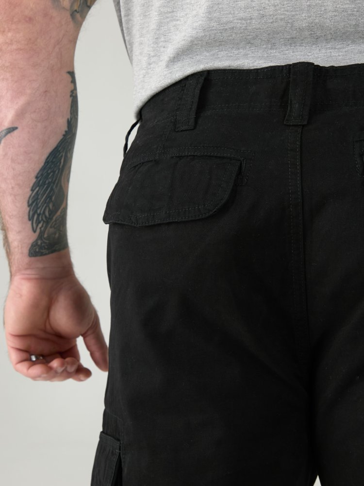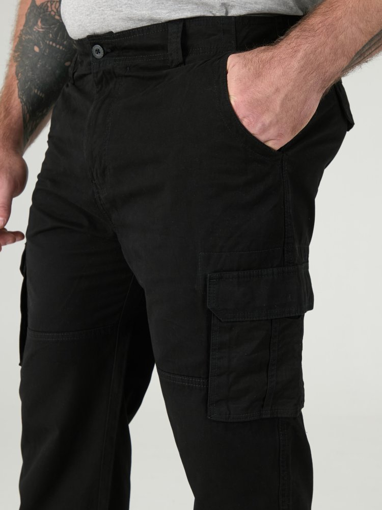 • D555 Mens Black Peached And Washed Cotton Cargo Trousers (ROBERT)
