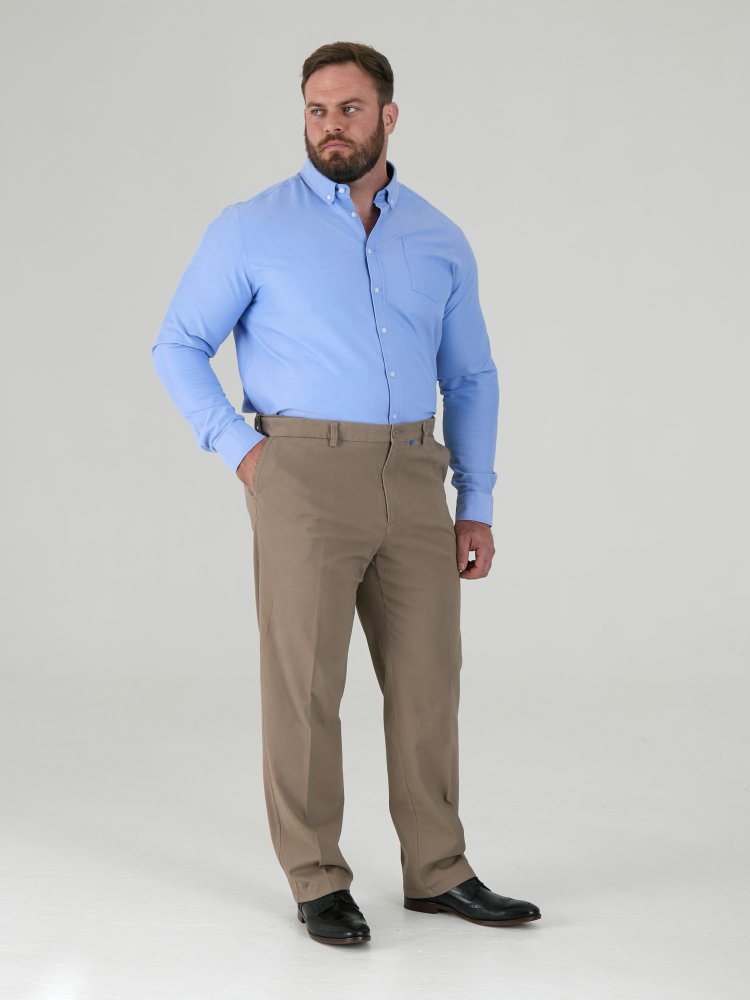 D555 Big Mens Stone Stretch Chino Pant With Xtenda Waist (BRUNO STONE)