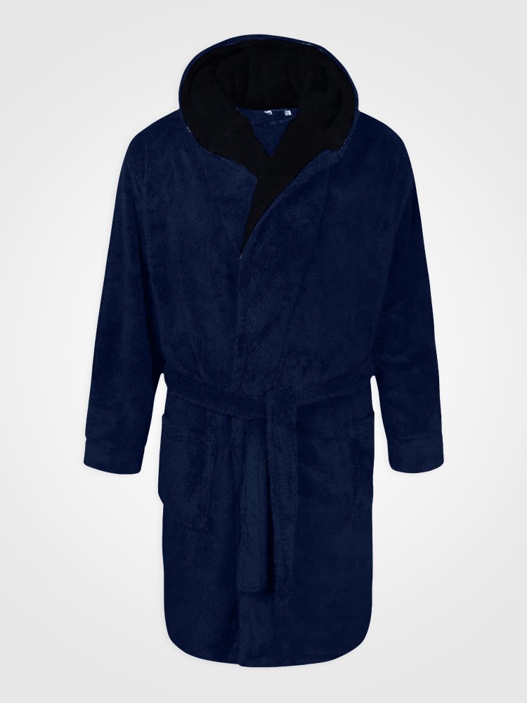 • D555 Mens Super Soft Navy Dressing Gown With Hood (NEWQUAY 2)