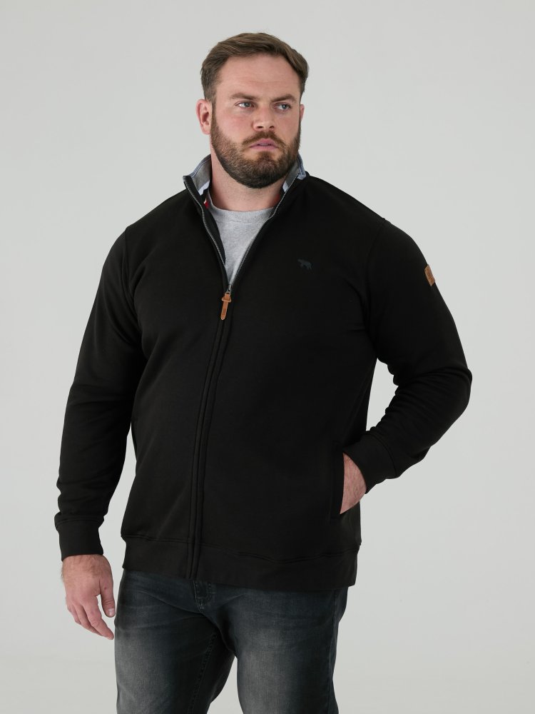 • D555 Big Mens Black Fleece Sweatshirt Zip Through (JOHNSON 1)