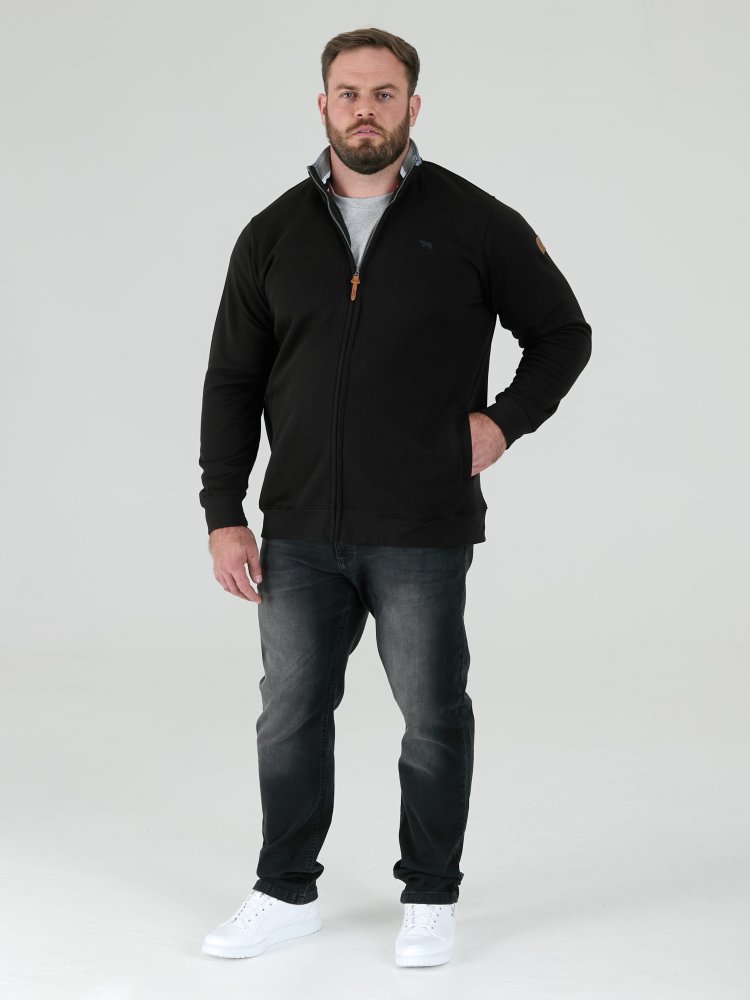 D555 Big Mens Black Fleece Sweatshirt Zip Through (JOHNSON 1)