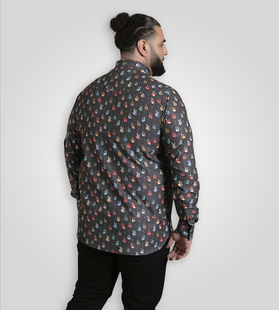 • D555 Big Mens Long Sleeve Shirt With All Over Guitar Print (WAKEFIELD)