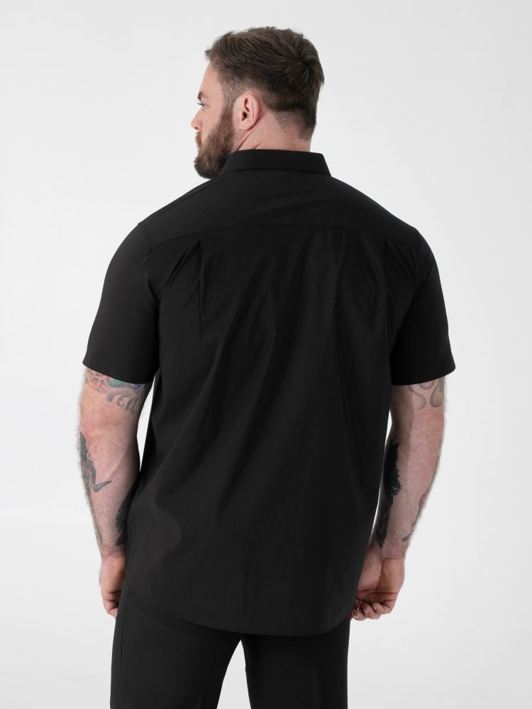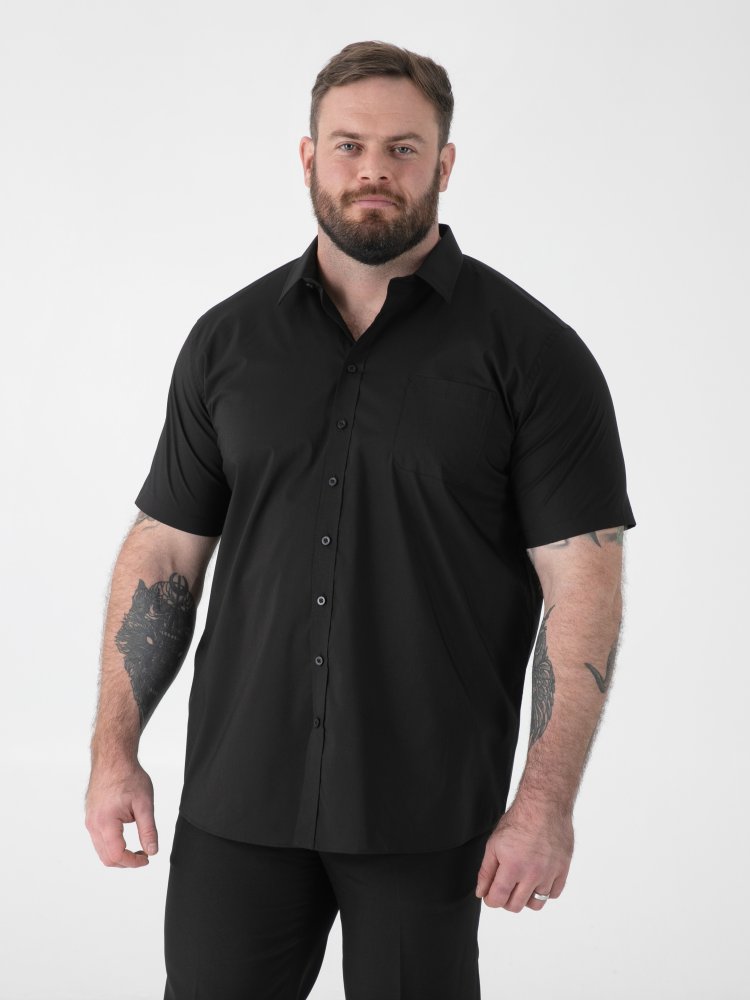 • D555 Mens Black Short Sleeve Stretch Shirt Stain Resistant Non Iron (LUCAS)