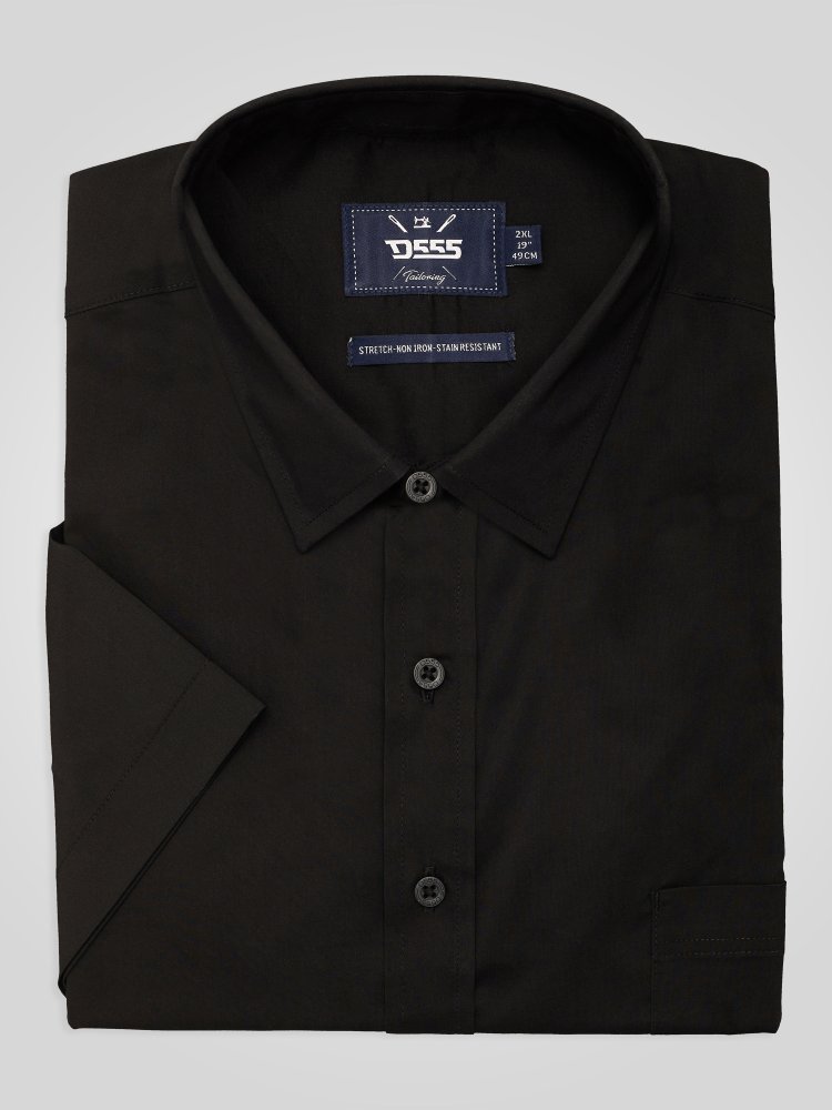 D555 Mens Black Short Sleeve Stretch Shirt Stain Resistant Non Iron (LUCAS-BLACK)