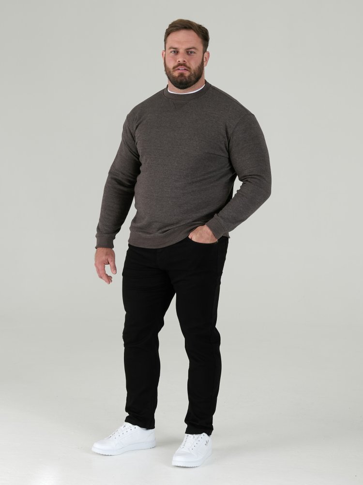 Kingsize Men’s sweatshirt from Rockford. Crafted from a poly cotton/fleece, the regular sweatshirt comprises a crew neck and ribbed knit cuffs and hem. The sweatshirt is available in black, navy and grey and is finished with subtle Rockford branding.