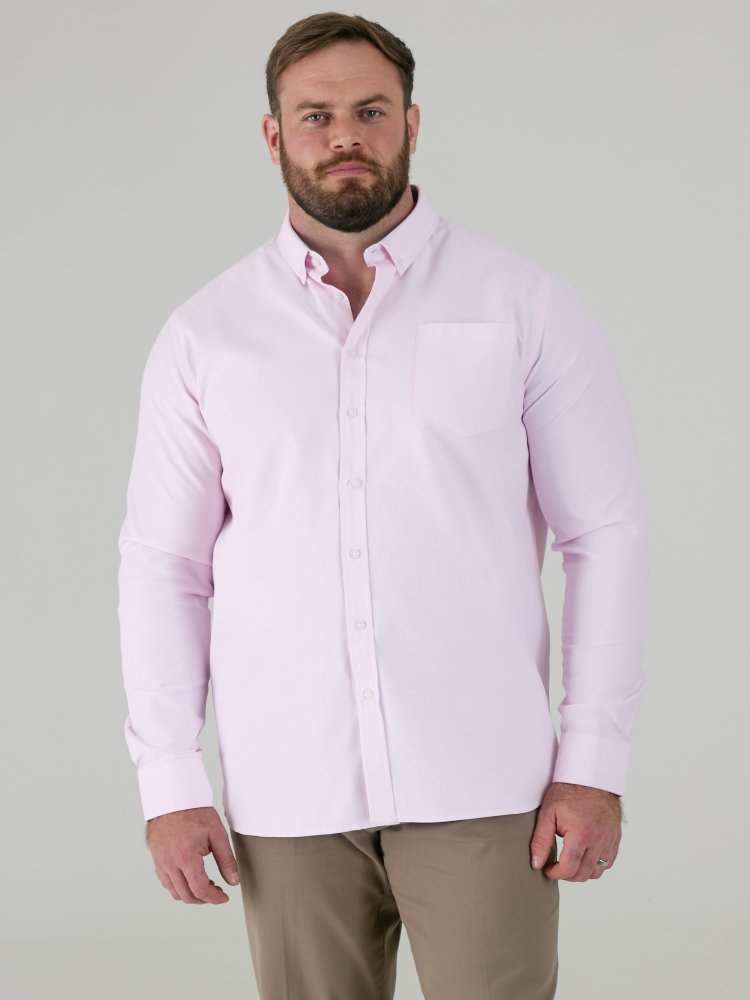• D555 Kingsize Mens Pink Oxford Shirt With Long Sleeves (RICHARD)