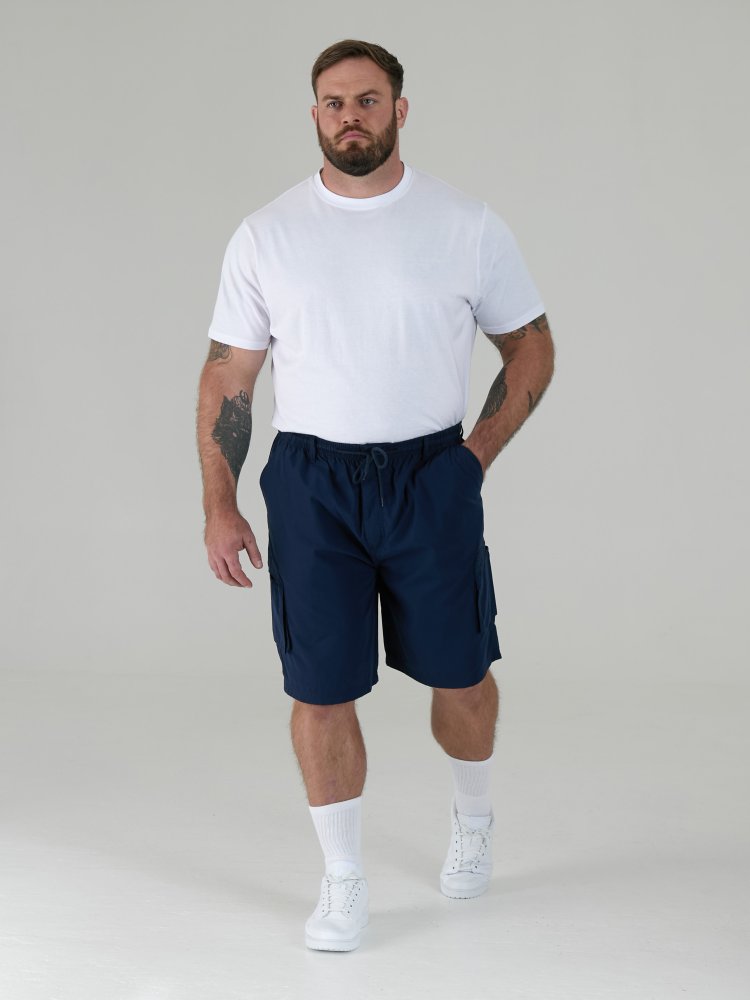 D555 Big Mens Navy Cargo Short With Shaped Leg Pockets (NICK NAVY)