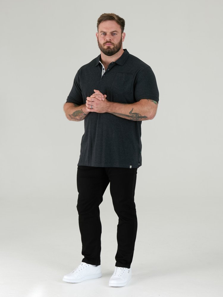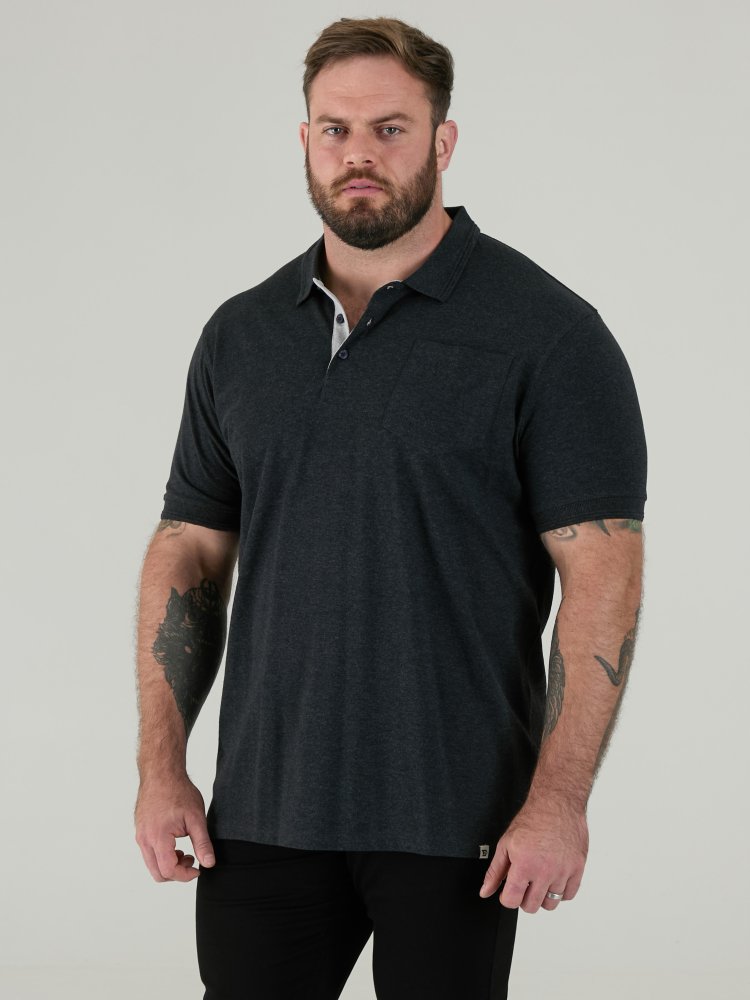 D555 Big Mens Charcoal Fully Combed Pique Polo Shirt With Pocket (GRANT CHARCOAL)
