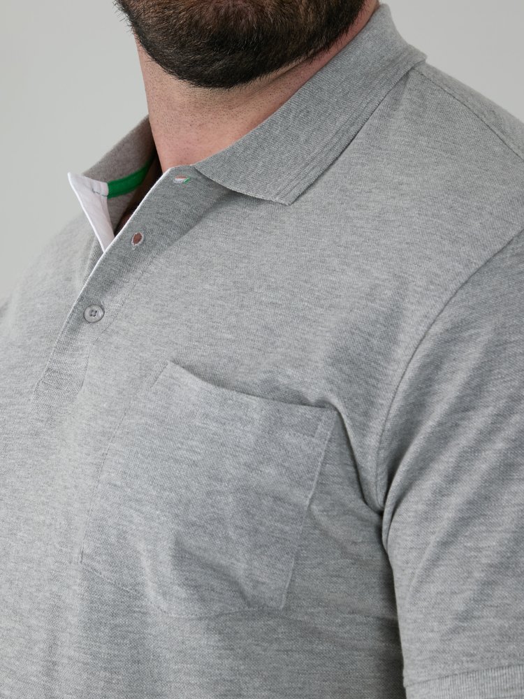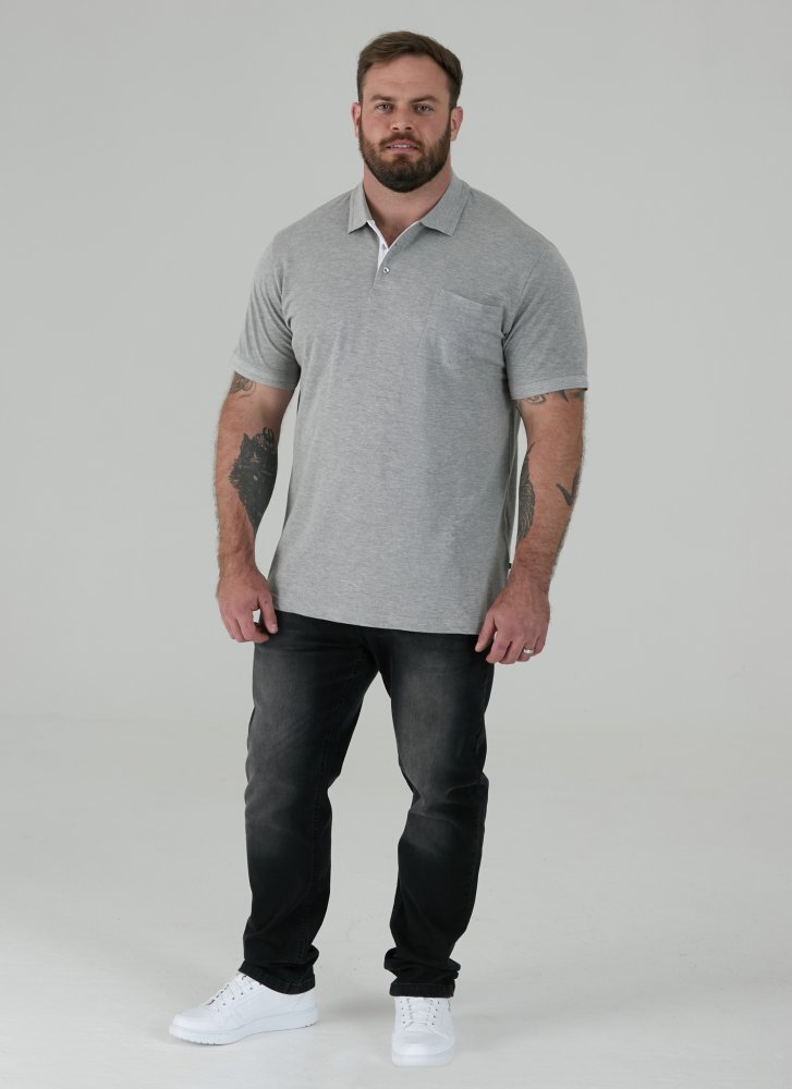 D555 Big Mens Grey Fully Combed Pique Polo Shirt With Pocket (GRANT GREY)