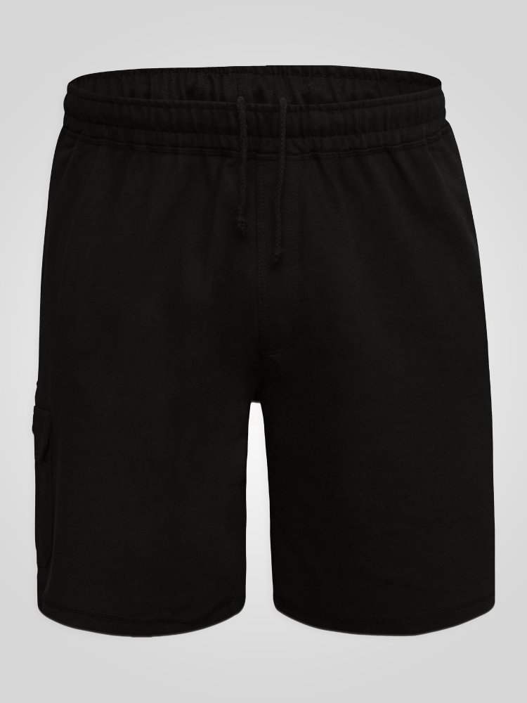 Men's cargo shorts from D555. Cut from a cotton terry, the 'John' shorts feature an elasticated waist to ensure maximum comfort and include two side patch pockets and a rear pocket. Available in black, navy and grey.