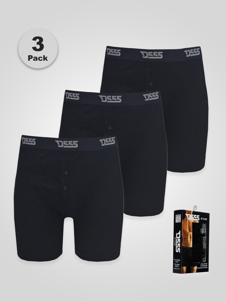 Men's pack of three cotton boxer shorts from D555. Crafted from a soft pure cotton for optimum comfort. Available in Black
