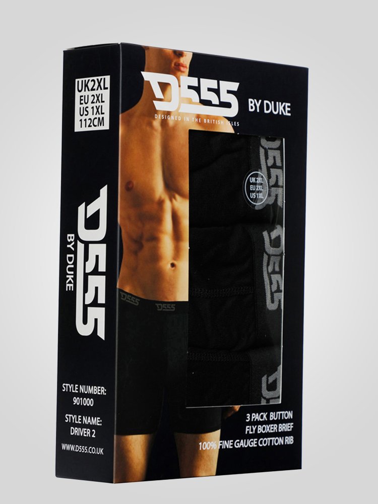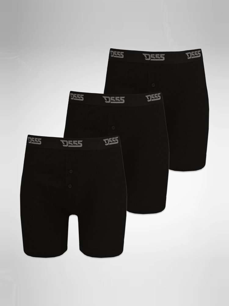 • D555 Kingsize Mens Black Cotton Boxer Shorts Pack of Three (DRIVER 2)