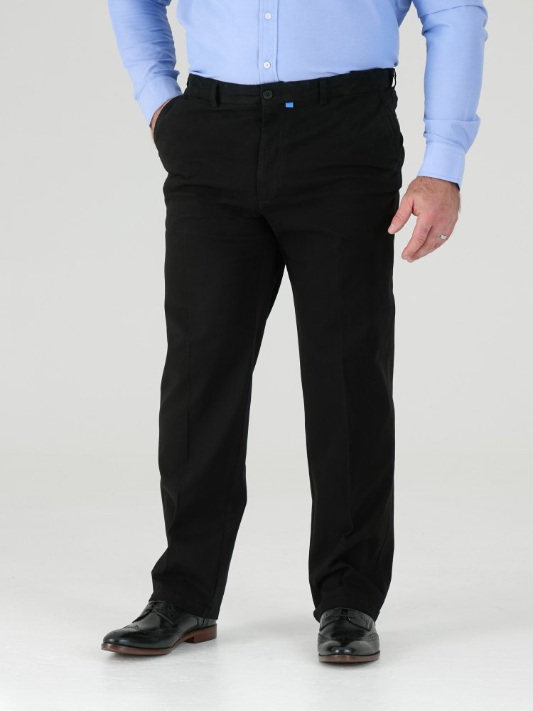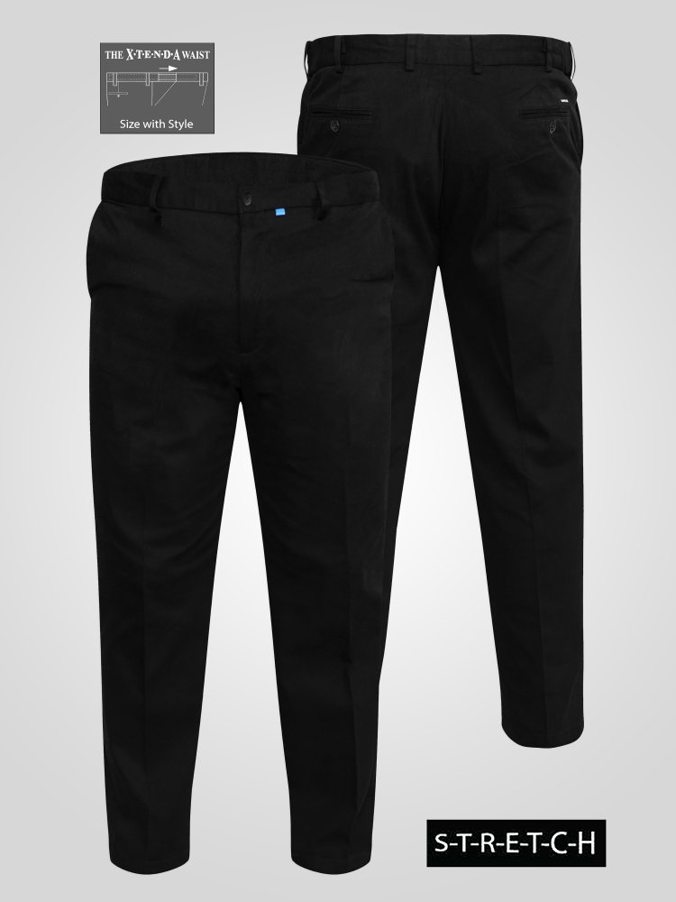 D555 Big Mens Black Stretch Chino Pant With Xtenda Waist (BRUNO BLACK )