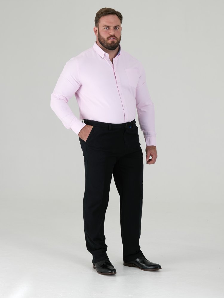 'Bruno' chino pant by D555. Crafted from cotton elastane giving both comfort and stretch, the chinos feature two front pockets and two rear pockets with a button. Fastened with a zip fly and top button closure, the chinos are complete with a brand tab on the rear pocket and beneath the waistband, tonal stitched detail and belt loops. Available in Black, Navy & Stone.