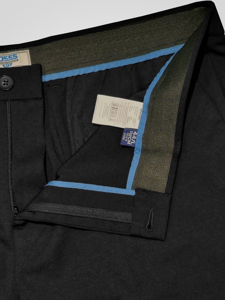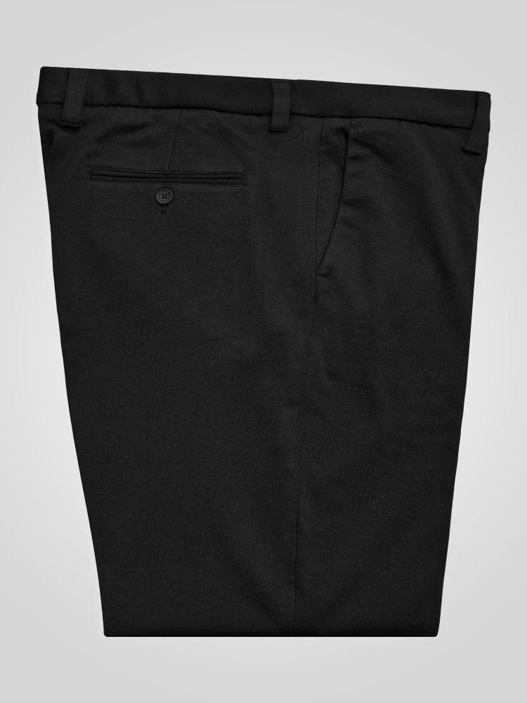 The D555 'Yarmouth' black trousers from British menswear brand D555. Crafted from polyester, viscose and elastane blend for a bi stretch comfortable fit. The smart trousers feature front pockets, belt loops and two rear pockets. Complete with a top button and zip fly closure