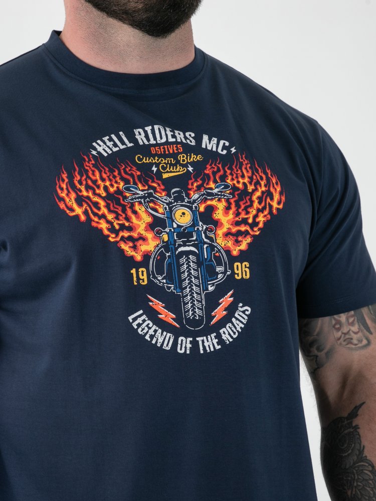 D555 Big Mens Motorbike With Flame Printed T-Shirt (HOCKNEY)
