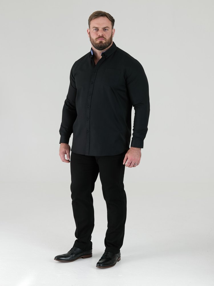 D555 Tall Mens Black Oxford Shirt With Long Sleeves (RICHARD BLACK)