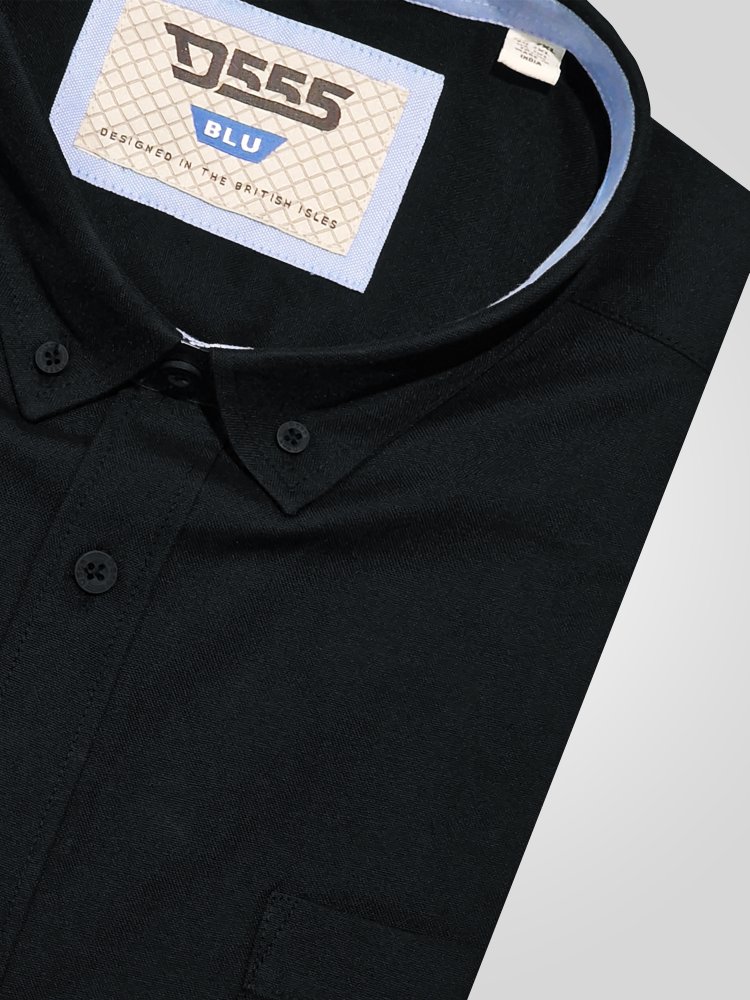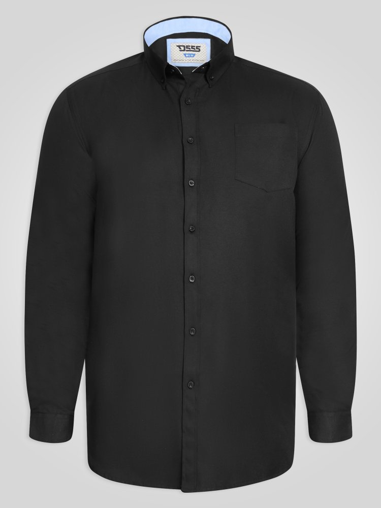 • D555 Tall Mens Black Oxford Shirt With Long Sleeves (RICHARD)