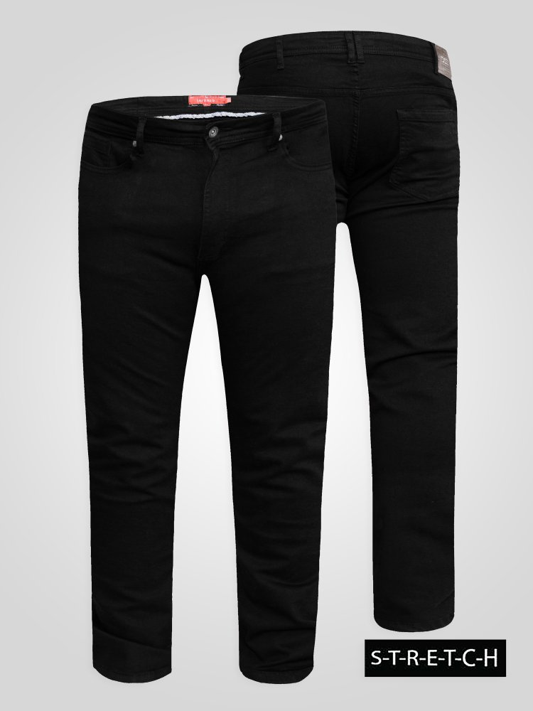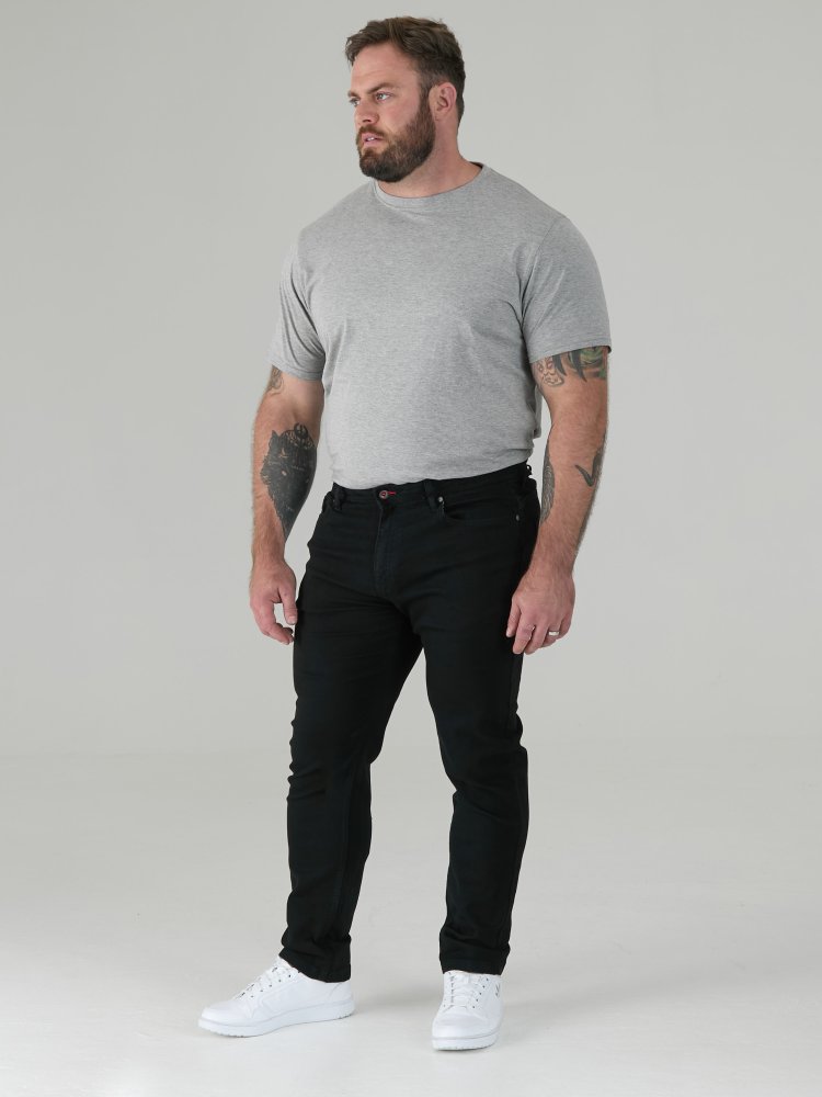 • D555 Tall Mens Tapered Fit Stretch Jeans In Black (CLAUDE)