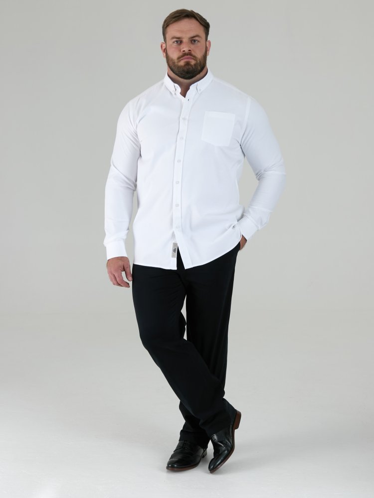 D555 Tall Mens White Oxford Shirt With Long Sleeves (RICHARD WHITE)