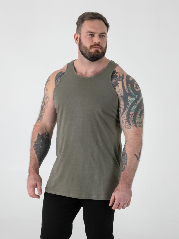 D555 Big Mens Khaki Muscle Vest (FABIO KHAKI)