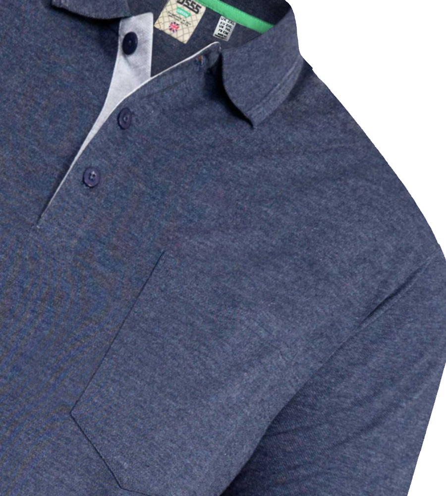 D555 Big Mens Denim Fully Combed Pique Polo Shirt With Pocket (GRANT DENIM)