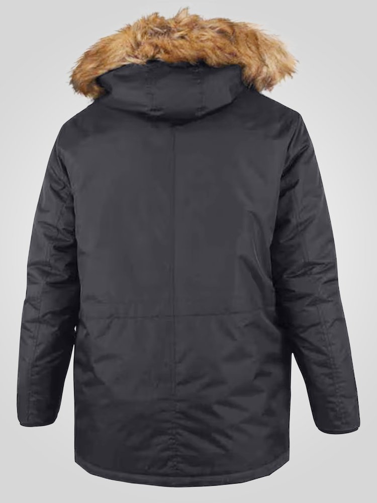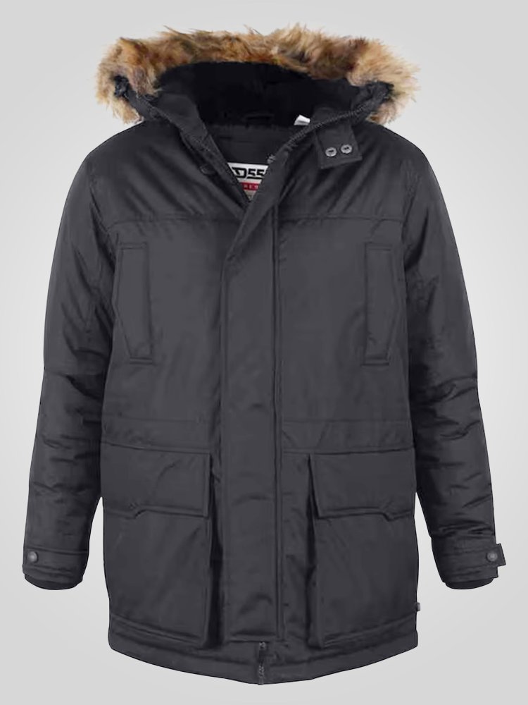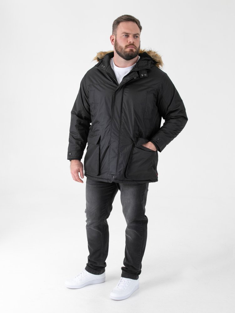 • D555 Kingsize Mens Black Parka Style Jacket With Detachable Fur Trim (LOVETT)
