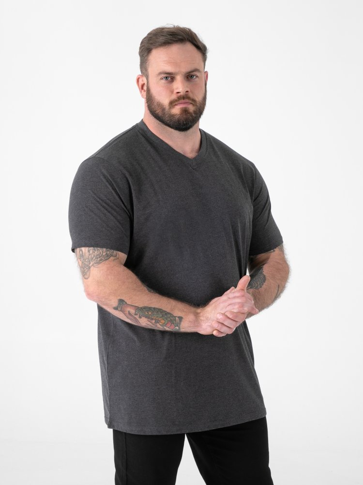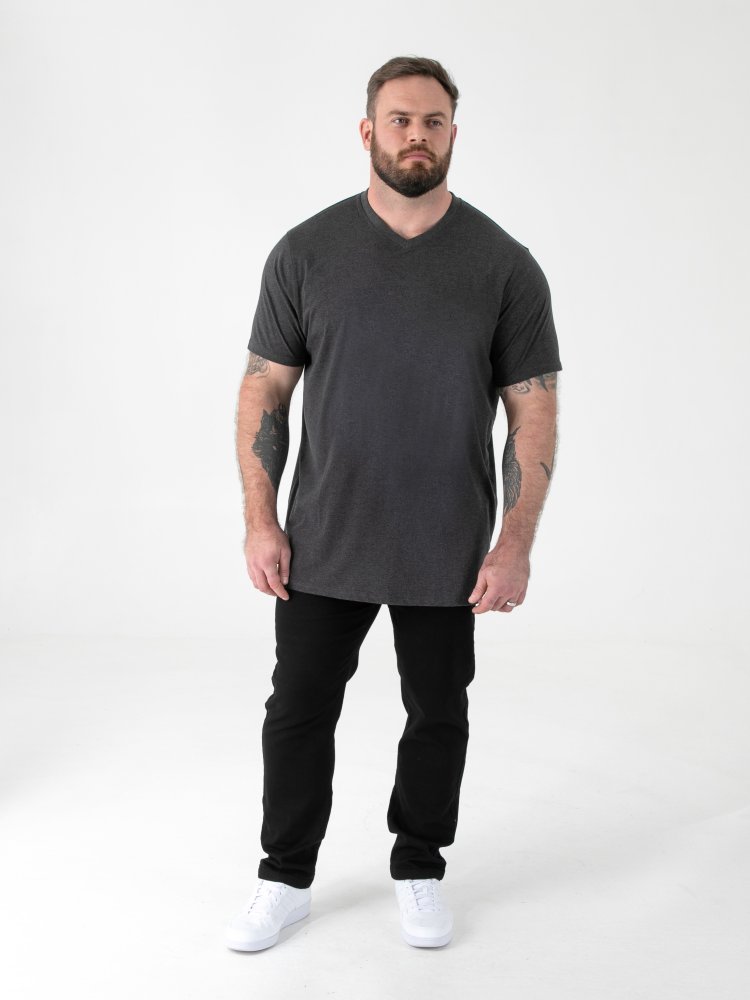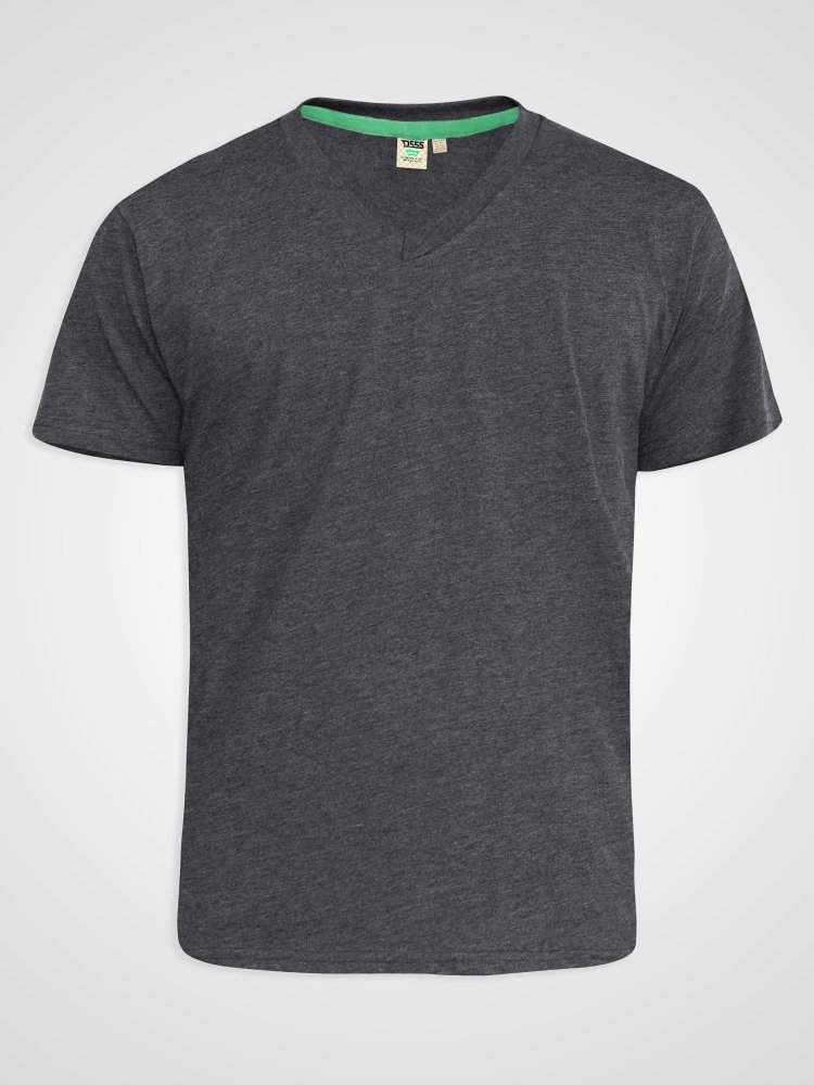D555 Big Mens Charcoal Combed Cotton V Neck T-Shirt (SIGNATURE CHARCOAL)