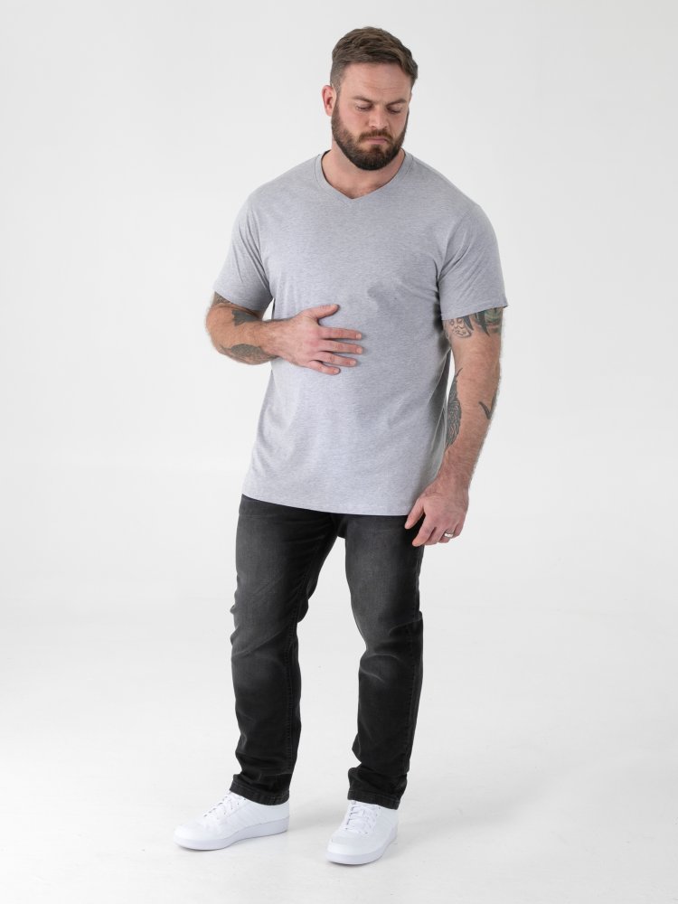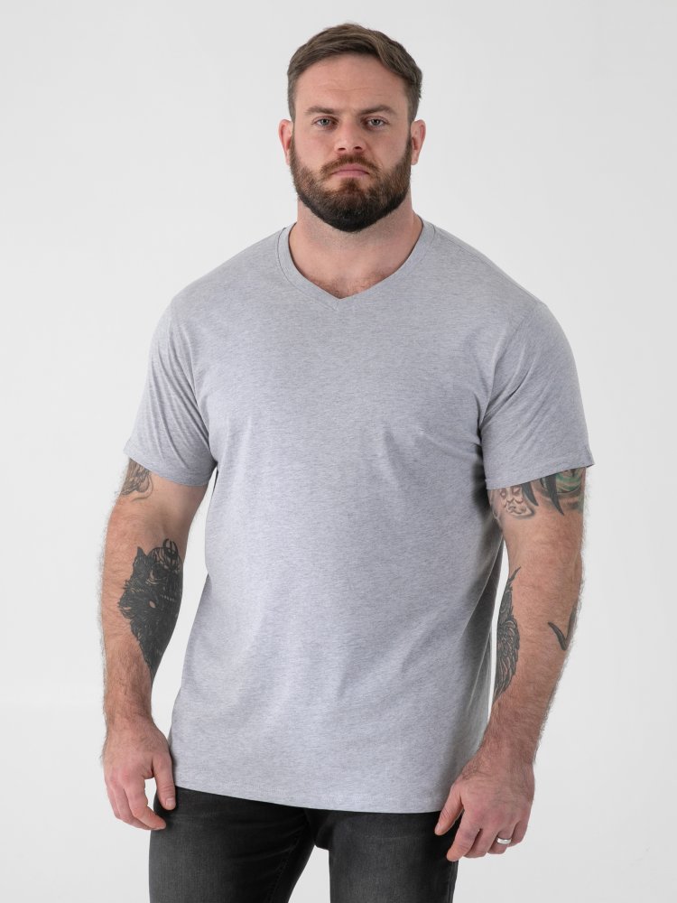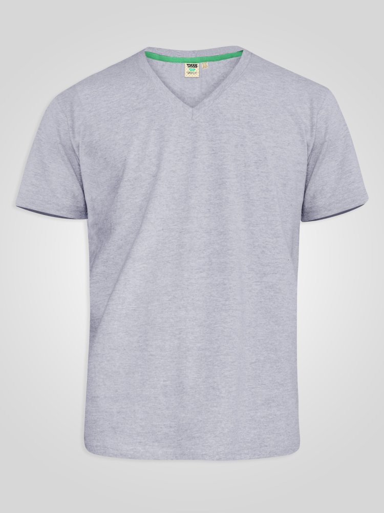 D555 Big Mens Grey Combed Cotton V Neck T-Shirt (SIGNATURE GREY)