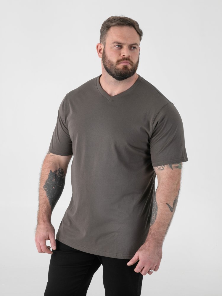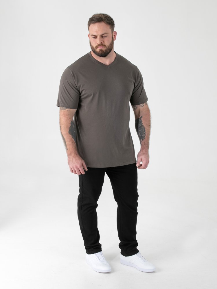 D555 Big Mens Khaki Combed Cotton V Neck T-shirt (SIGNATURE KHAKI)