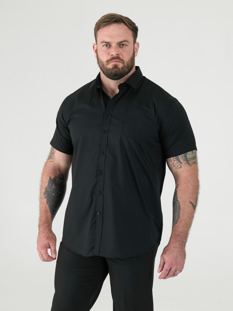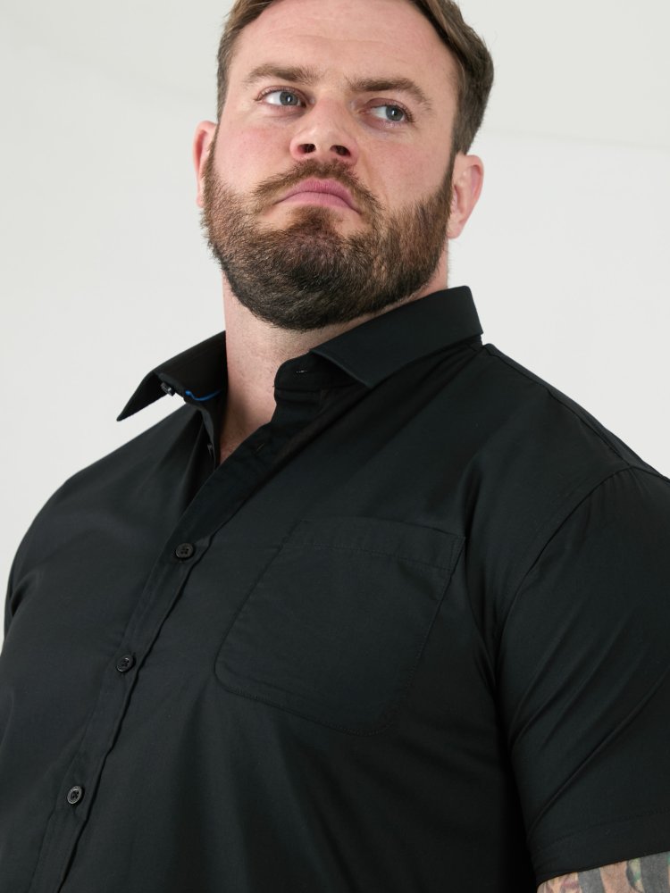 D555 Big Mens Black Short Sleeve Easy Iron Classic Regular Shirt (AERON )