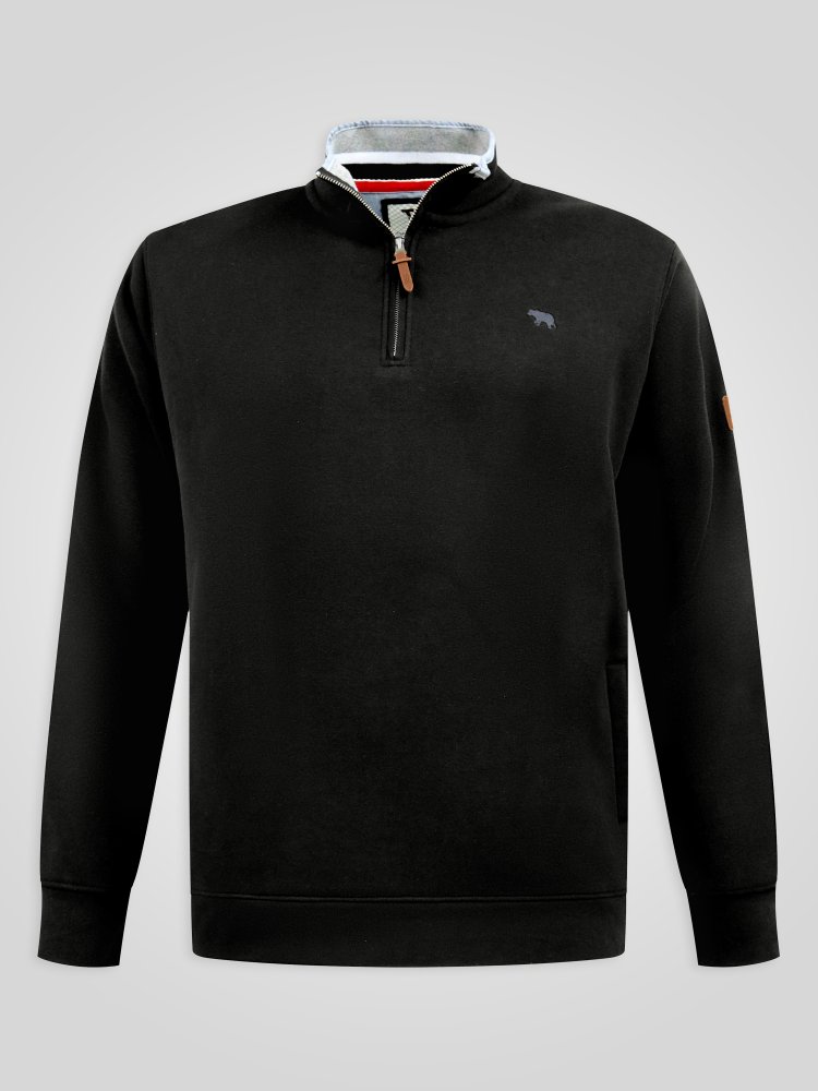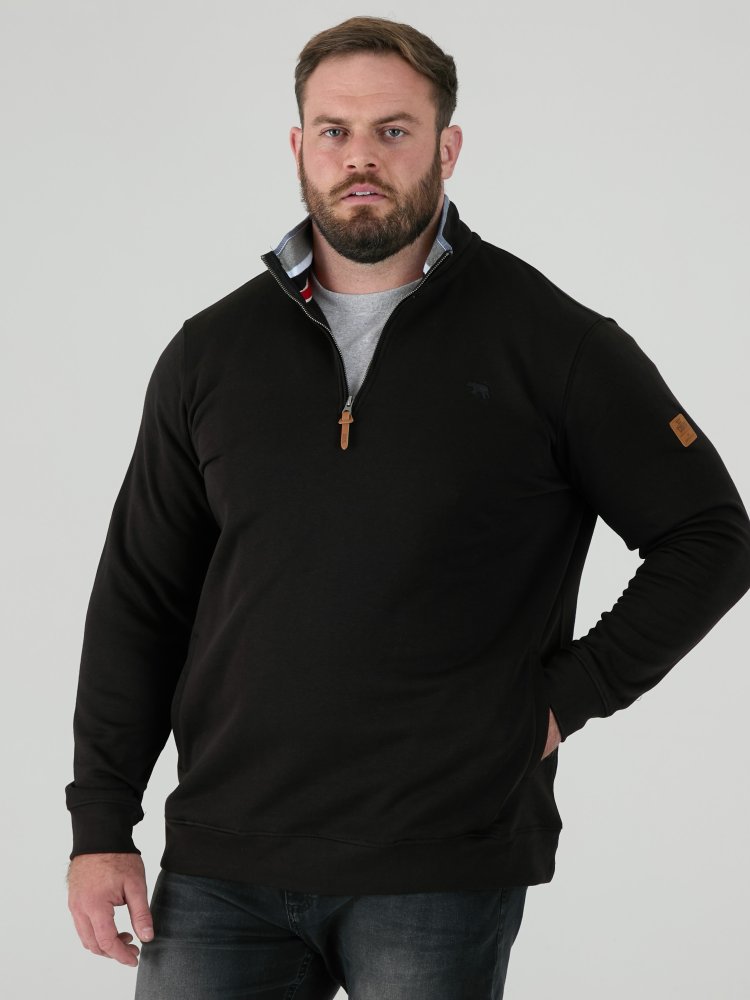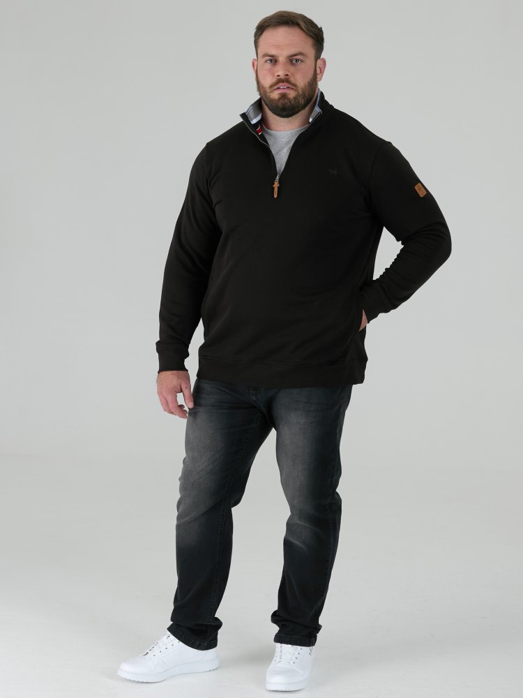 • D555 Big Mens Black Fleece Sweatshirt With 1/4 Zip (RUSSEL 1)