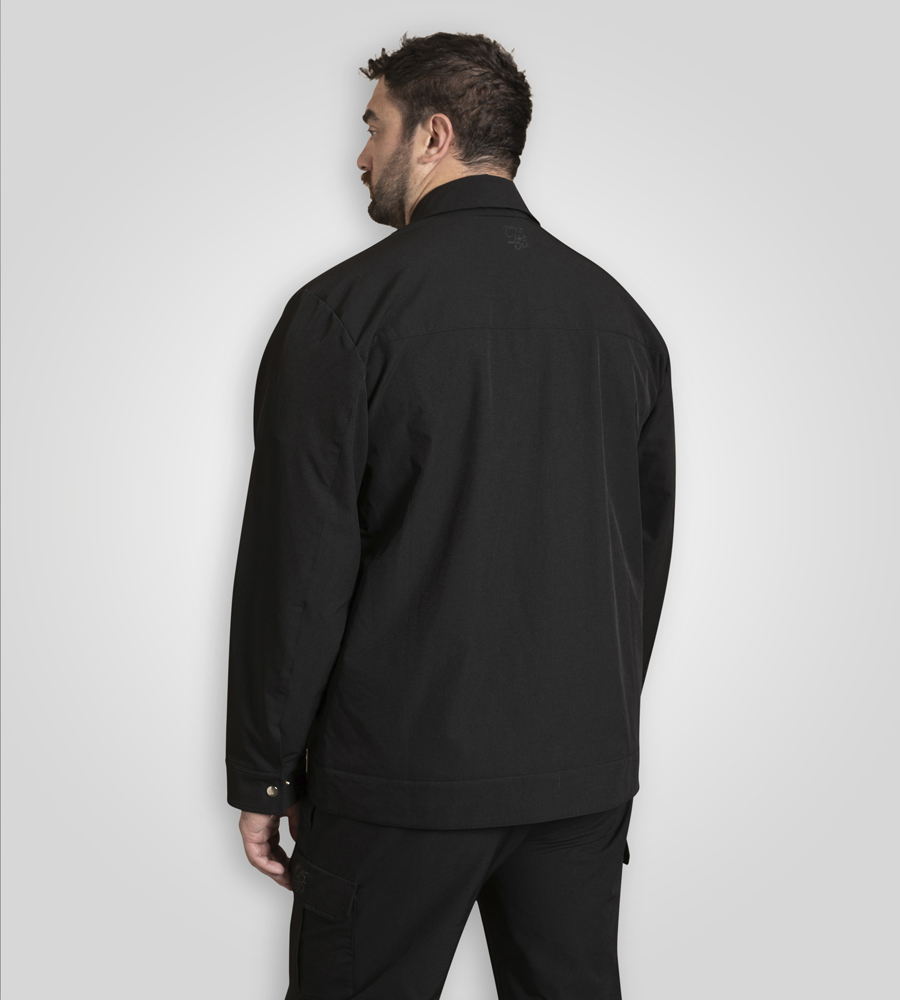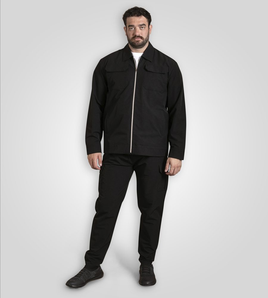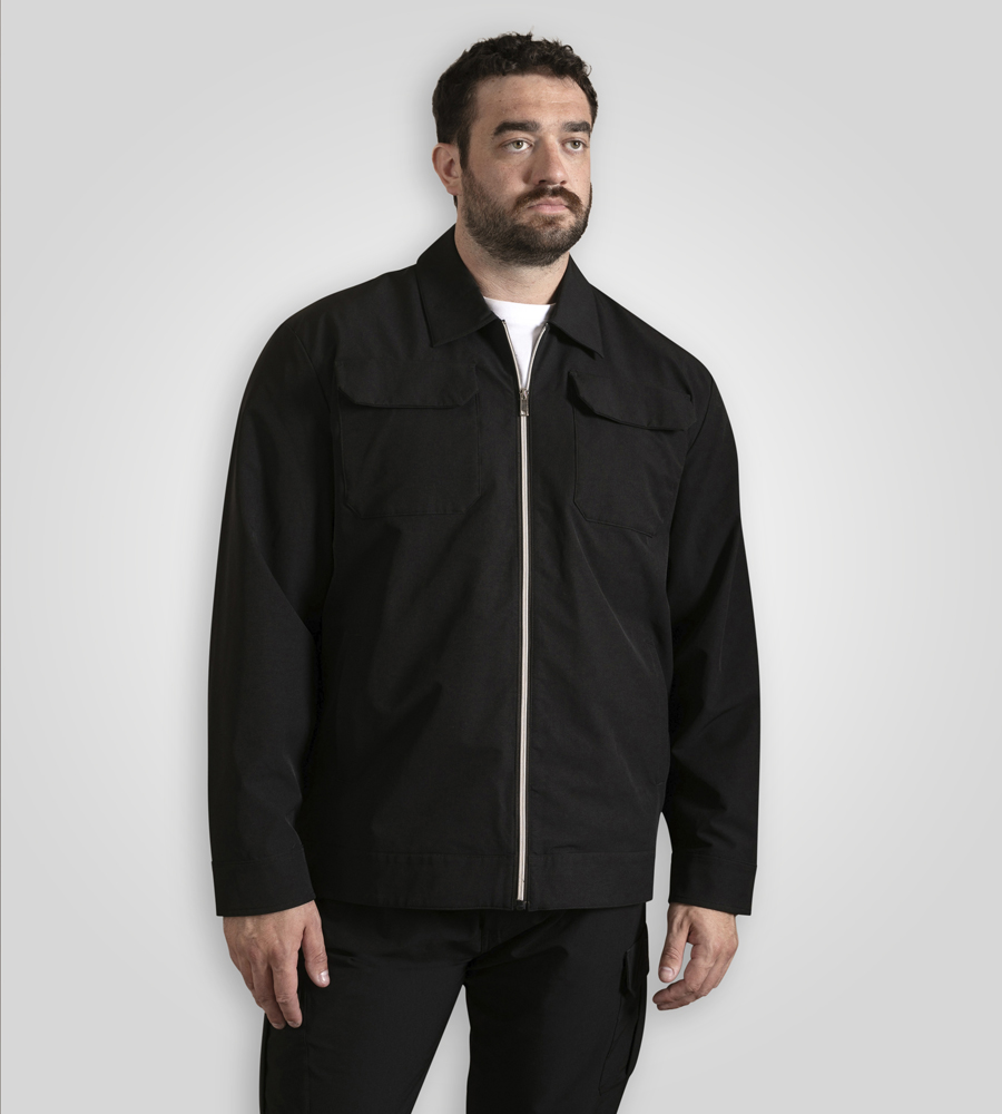Sleek and versatile, the D555 'Wimbledon' Jacket is crafted from a stretch nylon-elastane blend for comfort and flexibility. Featuring a full zip front, side pockets, and flap chest pockets for a smart utility look, this black jacket is ideal for everyday style with a modern edge.