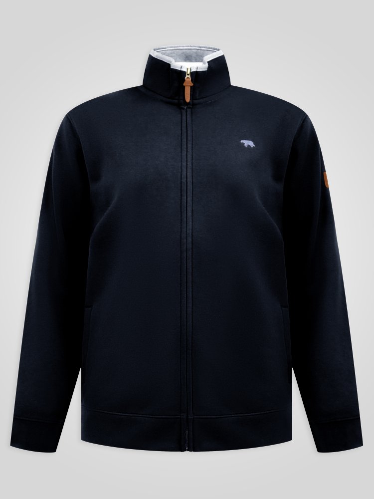 This premium 'Johnson' sweatshirt is the perfect layering piece to keep you warm without sacrificing your sense of fashion. The high quality cotton poly fleece feels luxurious against your skin, while the zip-through closure makes it easy to throw on over any outfit. The subtle chest embroidery and sleeve patch adds a refined finishing touch, elevating this sweatshirt from basic to brilliant. Available in Navy.