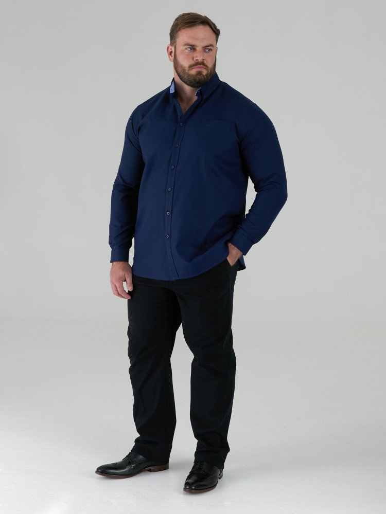 D555 Tall Mens Navy Oxford Shirt With Long Sleeves (RICHARD NAVY)
